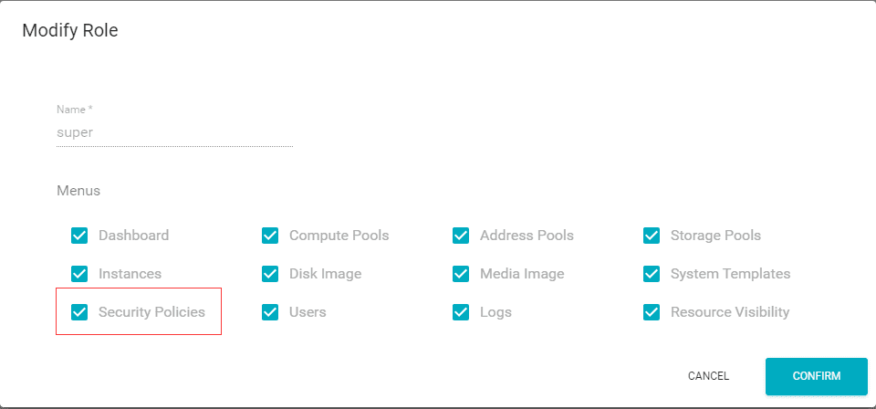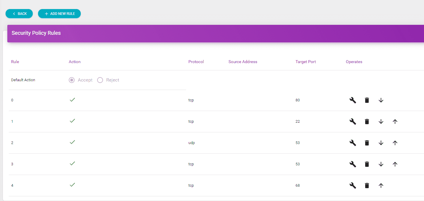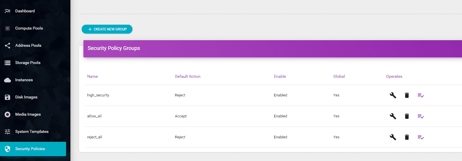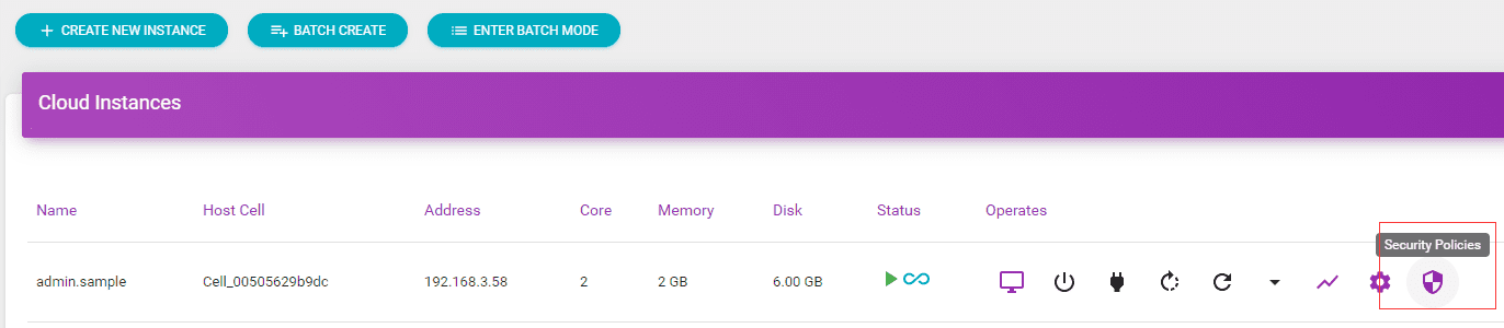At first, here is the security policy management. You can click the button in the instance list to enter the management page directly.