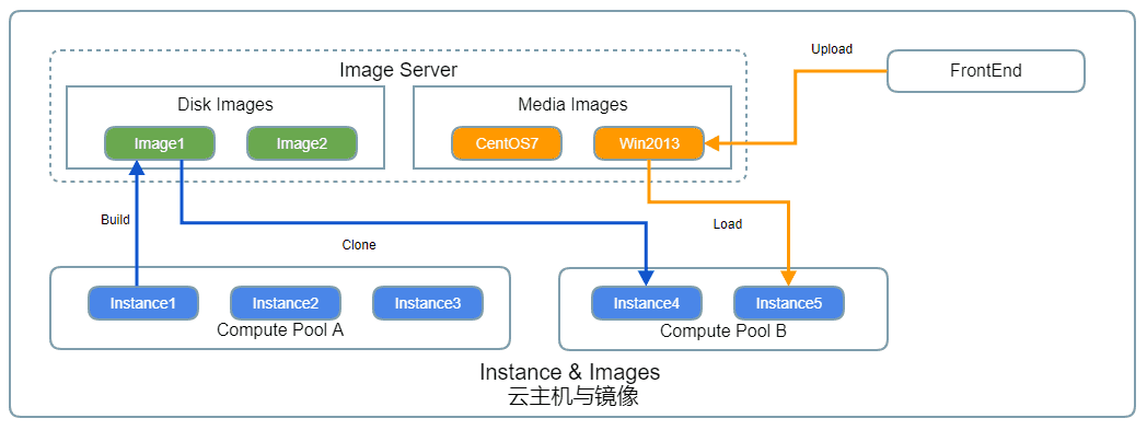 A clean instance without operation system and application is useless, but you can fast deploy a usable one using the media and disk image.