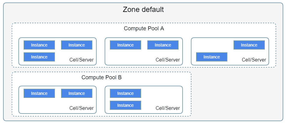 A Nano cluster could configure multiple resource pools, but a Cell node only belongs to one resource pool, the resources isolate by pools. A computing pool could associate with an address pool and a storage pool, instances created in the same pool use the identical storage and address backend, no need to configure individually. For example, if one resource pool dedicates to VIP with SSD backing instances, and the other resource pool serves cost-effective users, new instances bundle with SAS disk.
