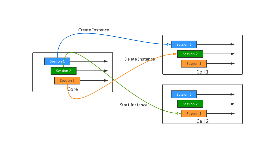 The Cell keeps collecting the status of this node and report to Core. When Core receives a creating request, it will choose a host with lighter load depends on the current status of every server in the pool, to distribute the pressure on the system and prolong the life of the server.