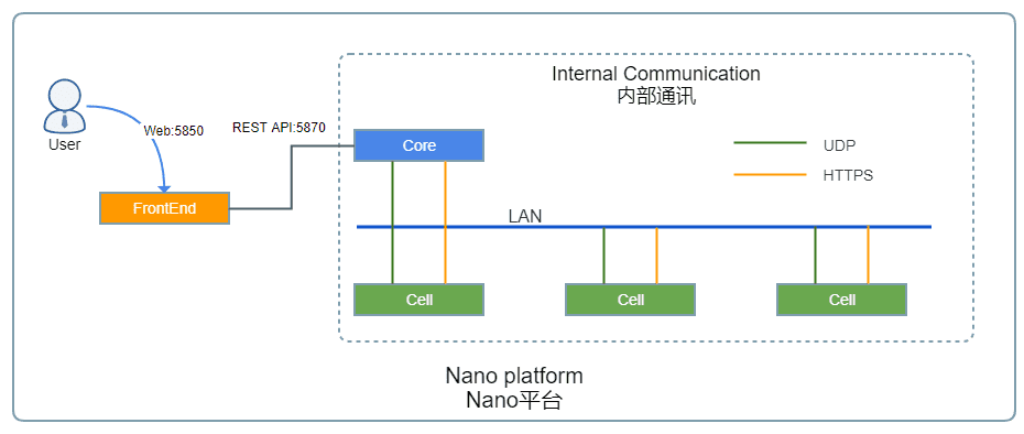 Nano has external and internal network communications.